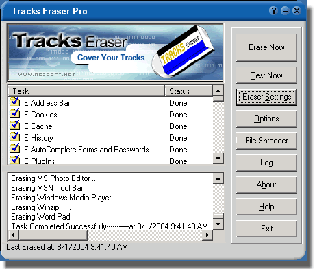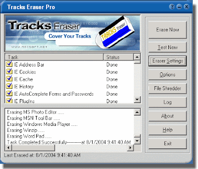 Tracks Eraser Pro - programa para remover informações desnecessárias de seu PC. Ele integra o Internet Explorer e realiza a limpeza, tais como arquivos de Internet (cookies, URL, cache, transições, etc). O programa permite limpar o histórico da barra de endereço do IE, Netscape, AOL, Opera. Remove cookies do IE, Netscape, AOL, Opera. Limpa cache da Internet (arquivos temporários da Internet), apaga arquivos de histórico da Internet, histórico de pesquisa na Internet, exclui plugin IE, arquivos index.dat, Menu Iniciar. Remove arquivos temporários do Windows, o histórico guardado de caixa de diálogo.Tamanho: 2,28 MB